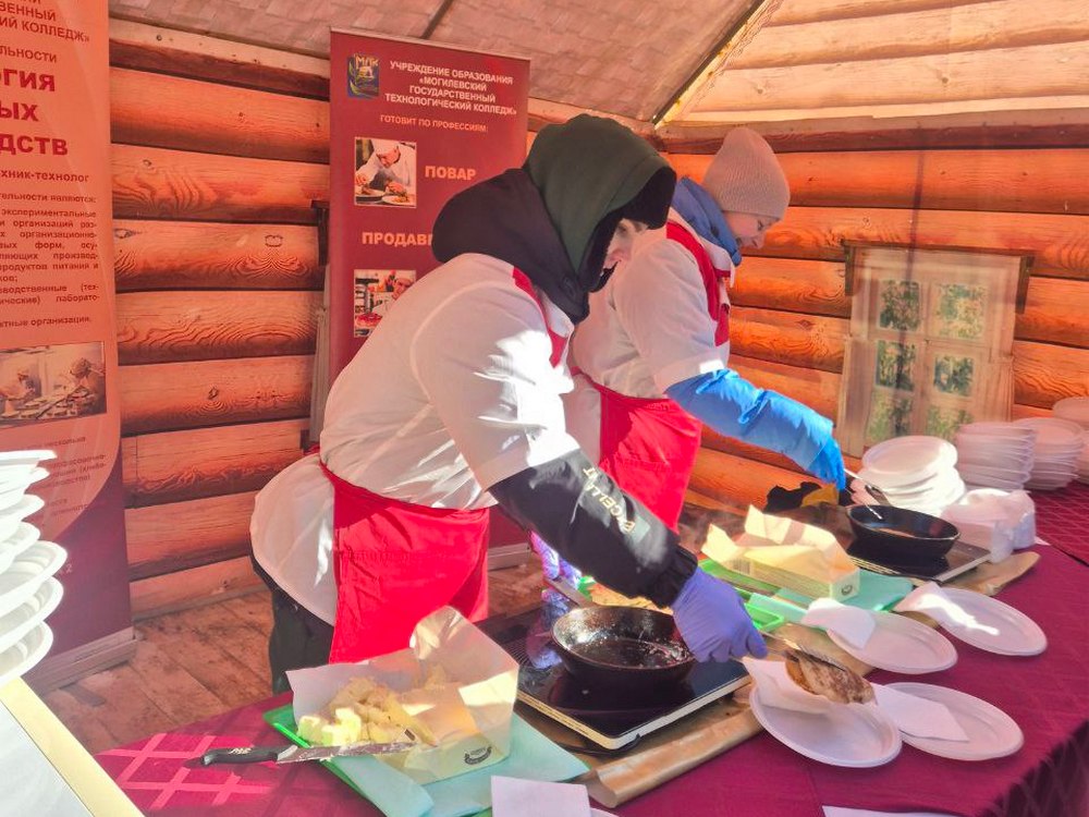 Во время праздника в лесопарке организовало работу и УО "Могилевский государственный технологический колледж", где можно было приобрести угощения - выпеченные блины.