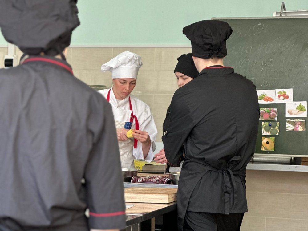23.03.2026г. прошло учебное занятие производственного обучения, мастера Устиновой Ольги Алексеевны по теме: приемы сложных форм нарезки овощей, их использование.