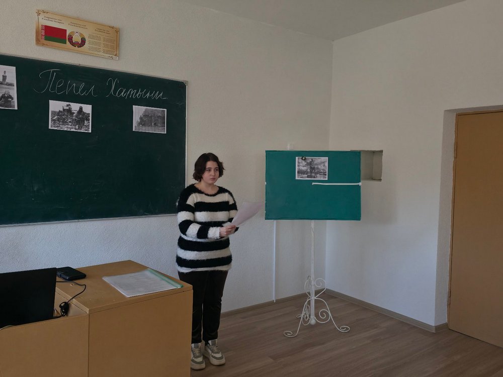 Учащимися была затронута трагическая страница истории Беларуси времен ВОВ. Ребята были ознакомлены с трагедией деревни Хатынь, как символом геноцида белорусского народа в годы ВОВ. По завершении мероприятия была почтена память жертв Отечественной войны. минутой молчания. У учащихся осталось чувство гражданской скорби и нравственной ответственности.