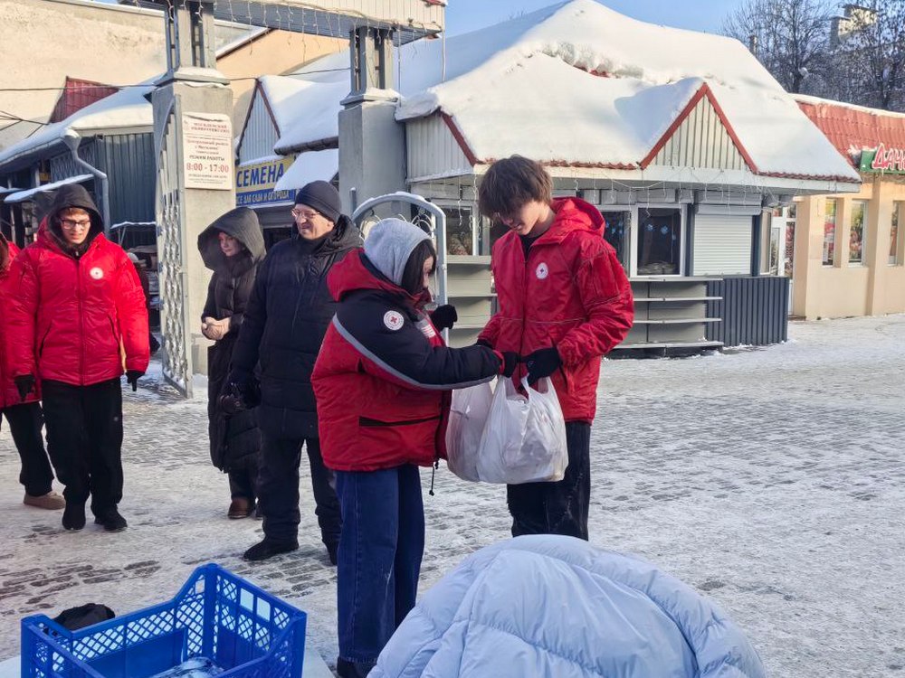 В период сильных белорусских морозов волонтёры Могилёвского государственного технологического колледжа по зову сердца работают на пункте обогрева Белорусского Красного Креста.